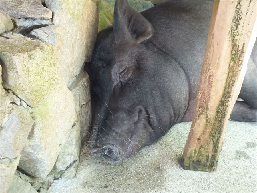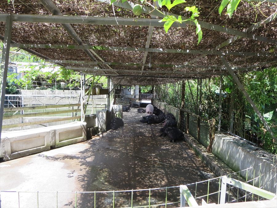 アグー豚は、発育速度が遅く出生数も少ないという欠点もありますが、頭数を多くすると管理が行き届かなくなるため、 飼育頭数を限定することで生産者が毎日 【責任を持って】面倒をみることができる頭数に絞っています。 そうすることにより、豚一頭、一頭に目を向けることができ、体調の異変にもすぐに気が付く事ができるため、豚はのびのびとストレスなく育っていくことができます。