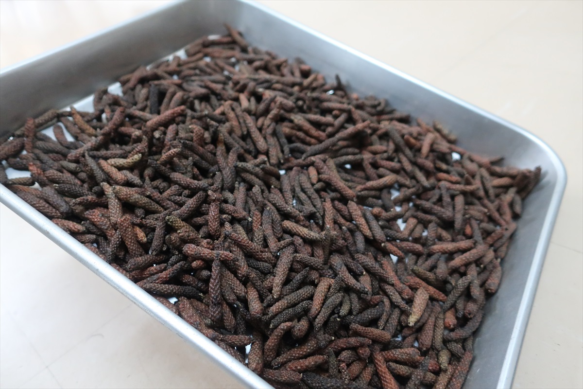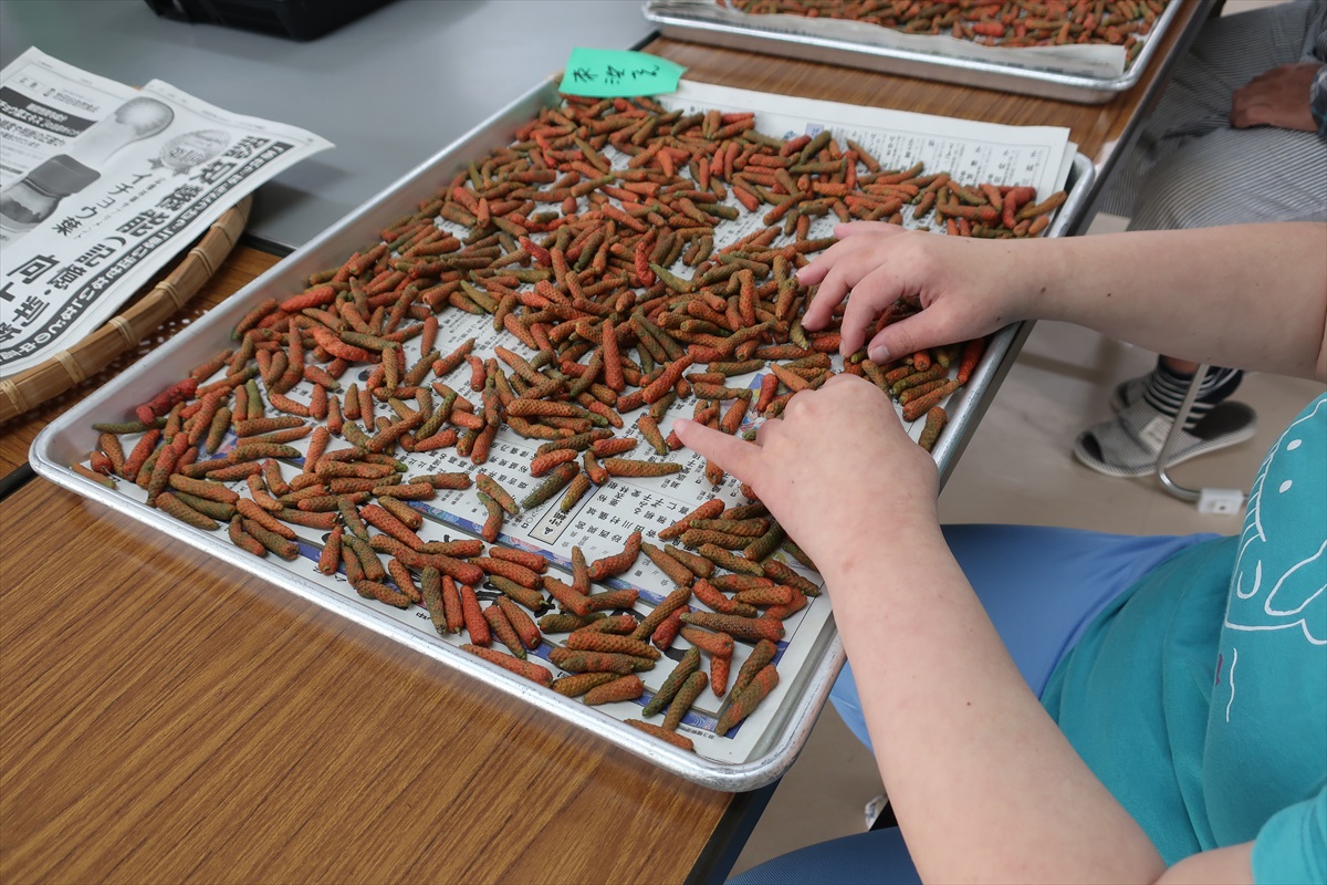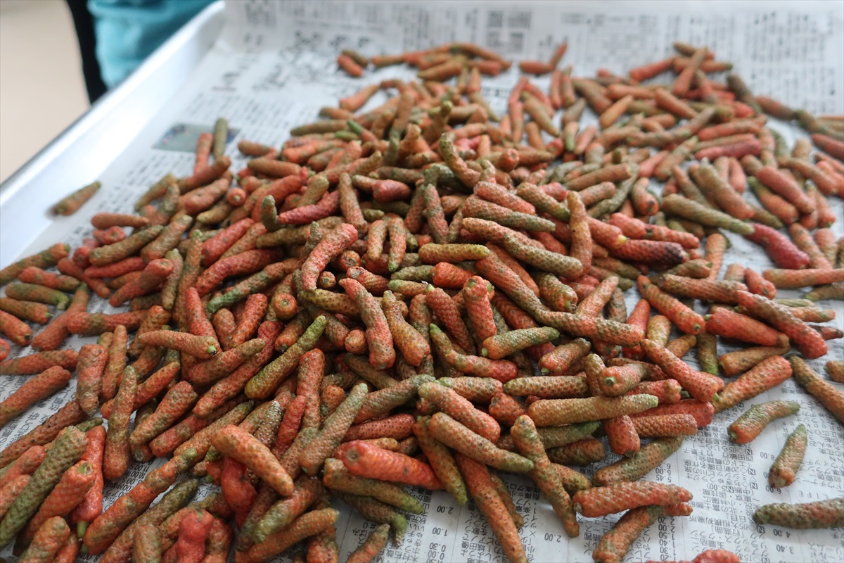 現在は八重瀬町の畑でピパーツの栽培を行っています。昨年より収穫ができるようになり、選別して集荷しております。